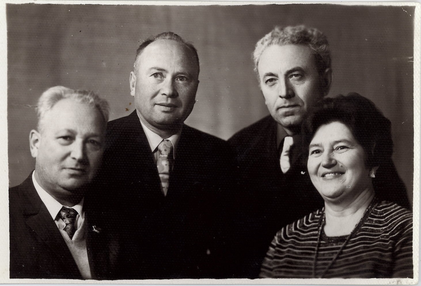 Печерский (крайний слева) с супругой, Аркадием Вайспапиром и Семеном Розенфельдом, 1970-е