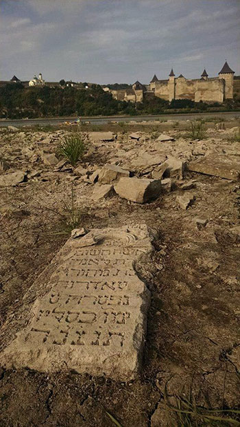 В середине августа участники львовской эколого-культурологической экспедиции «Днестр-2015» аккурат напротив знаменитой Хотинской крепости в осушенном русле Днестра нашли обломки еврейских надгробий конца XVIII века.