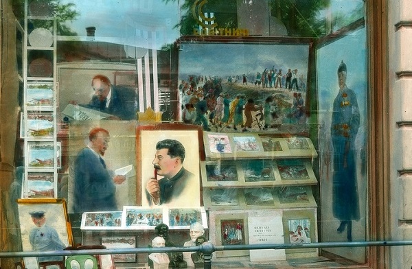 Витрина магазина с портретами и бюстами советских вождей, Одесса, 1930-е