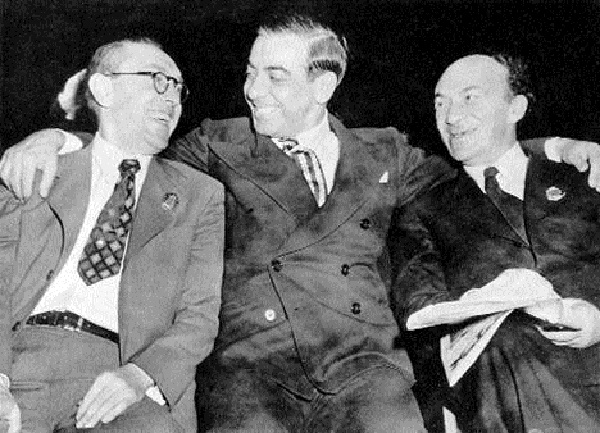 Ицик Фефер и Соломон Михоэлс с актером Эдди Кантором, Голливуд, 1943