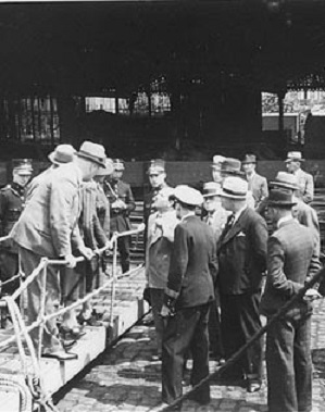 | Капитан «Сент-Луиса» Густав Шрёдер ведёт в порту Антверпена переговоры о получении беженцами разрешения на въезд | Еврейские беженцы на борту корабля |