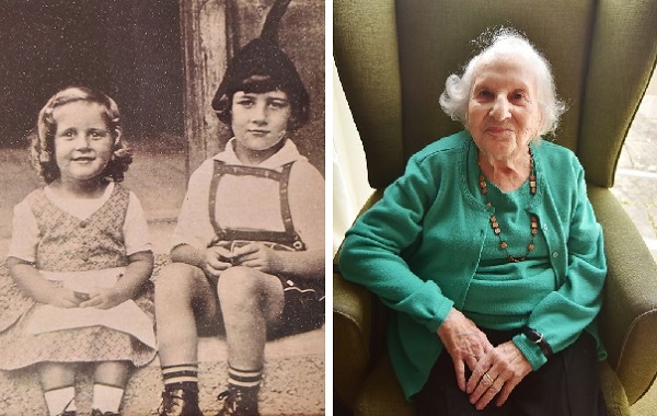 Алиса с братом Ричардом, нач. 1920-х ...и сегодня. Фото: Dan Regan, BristolLive