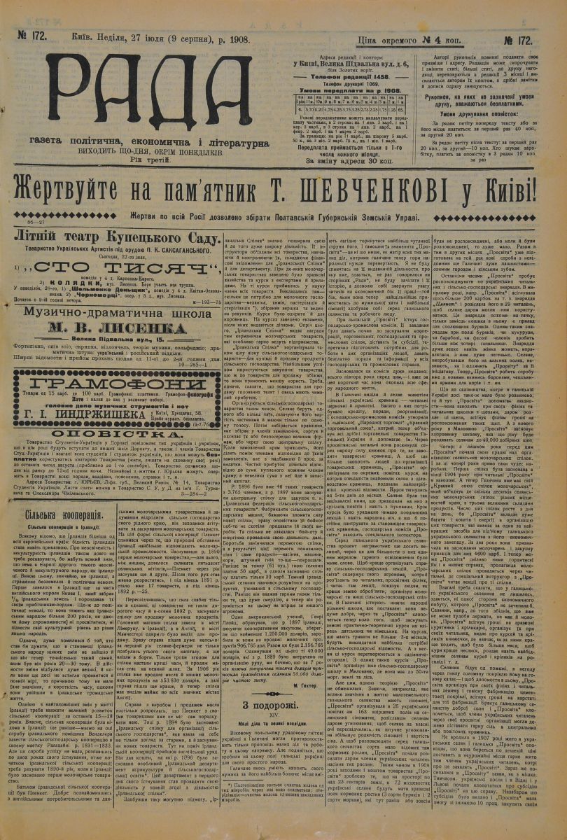 Газета «Рада», 1908