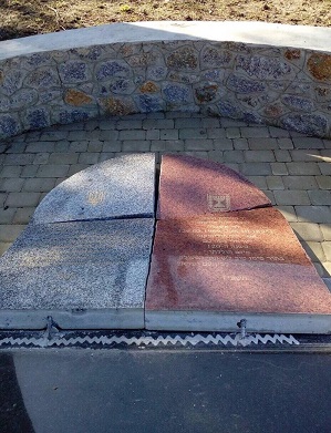 Оскверненный монумент жертвам Холокоста в Полтаве  Разбитая мемориальная плита в честь уроженца Оратова, премьер-министра Израиля Леви Эшколя
