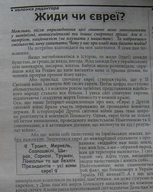 В отличие от многих наблюдателей, искренне возмущенных или цинично нагнетающих истерию, я не считаю, что наличие в информационном пространстве антисемитских месседжей непременно ведет к насилию по отношению к евреям. Украина — одна из самых безопасных стран Европы с точки зрения вероятности антисемитских нападений. Однако бросается в глаза резкое несоответствие официальных заявлений лидеров государства и сложившейся практики. Безнаказанность откровенной антисемитской пропаганды портит настроение не только украинским евреям. Она, как и  антисемитский вандализм, вредит имиджу страны и, в отличие от осквернения синагог, это явление нельзя списать на провокаторов. Пассивность государства можно объяснить (например, несовершенством законодательной базы), но сложно оправдать.