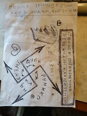 Листок из блокнота подозреваемого в серии осквернений мемориалов памяти жертв Холокоста  Граффити на Стене памяти из мацев в Коломые