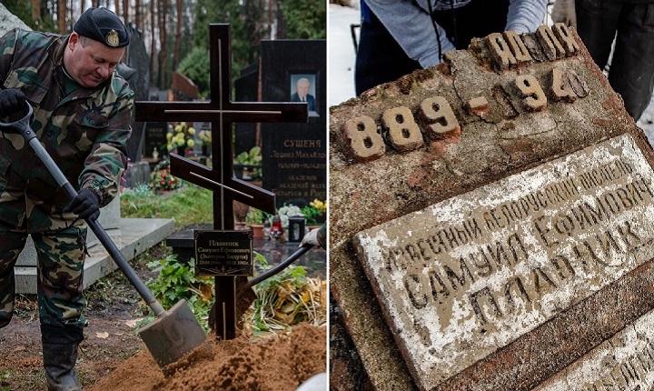 Перезахоронение в Минске, 3 ноября 2020 г. Фото: Tut.by Фрагмент надгробия, доставленного из Уральска