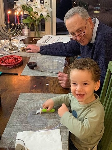 | Чак Шумер на гей-прайде, Нью-Йорк. Фото: David Shankbone | Сенатор зажигает ханукию с внуком Ноахом |