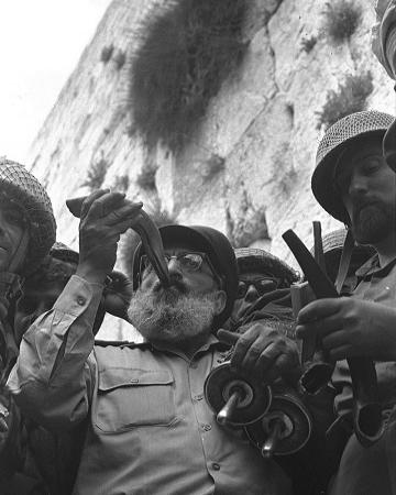 | Голда Меир | Раввин Шломо Горен трубит в шофар у Стены плача |