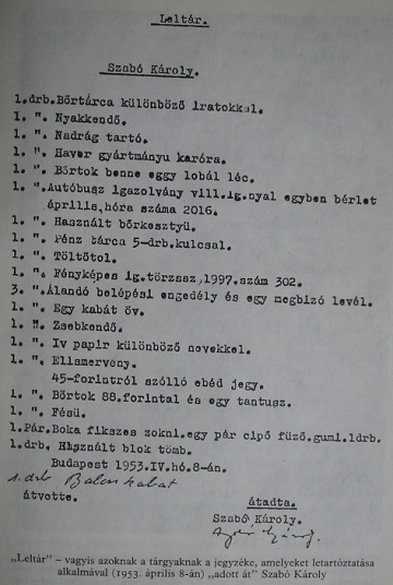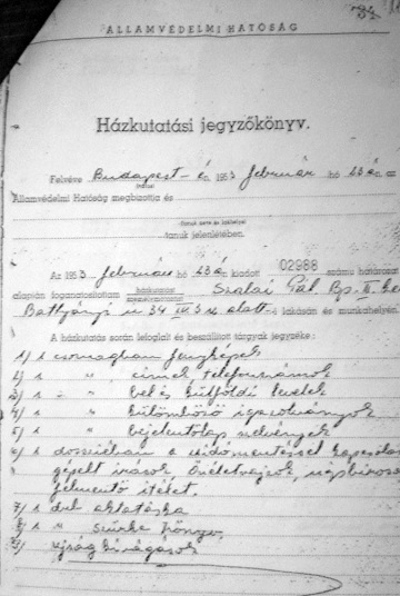 Документ из дела Кароя Сабо, 8 апреля 1953 Отчет об обыске дома Пала Салаи, 23 февраля 1953