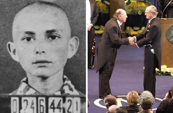 Имре Кертес в концлагере                            ...и на вручении Нобелевской премии